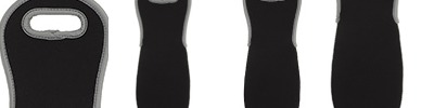 Neoprene 2.5mm wine tote holds and insulates one 750ml bottle.; Features soft grip handles, machine washable cold, drip dry and stores flat; 19" x 5" x .25"; Non-branded label/tag ;