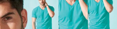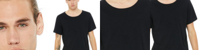4.2 oz., 100 % combed and ring spun cotton; 32 singles; Raw neck; Retail fit; Side-seamed; Shoulder taping; Tear away label;