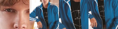 - Contrast, super-stretch rib trim cuffs and bottom band
