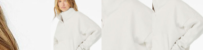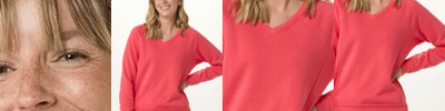 - Ribbed bottom band and sleeve cuff with raw edge seams