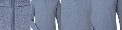 - 12.5 oz./yd² (420gm), 75/25 ring-spun cotton/polyester 3-end fleece with 100% cotton face yarns on solid colors, 21 singles
