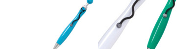 - Click-action ballpoint pen with smiley face, stethoscope-shaped clip and mop-top hair