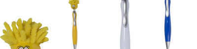 - Fun multi-function click-action ballpoint pen with fidget mop-top spinner smiley face head