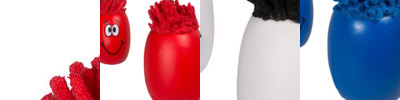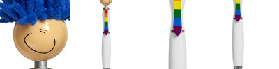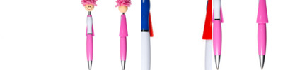 - Click-action ballpoint pen with smiley face, superhero cap and mop-top hair