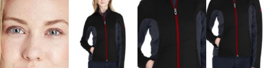 - Stretch fleece panels at underarm and side body