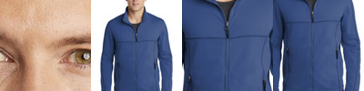 - 100% woven poly shell bonded to 100% poly knit fleece with 93/7 poly/spandex fleece side panels
