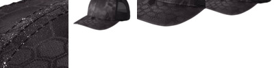 Fabric: 100% polyester foam front panel with 100% polyester microfiber (photo print); 100% polyester mesh mid and back panels Structure: Structured Profile: Mid Features: Unique photo-real sublimated print on front panels Closure: 7-position adjustable snap