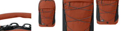 - Attached, toggled cinch sack with contrast heat transfer Eddie Bauer logo
